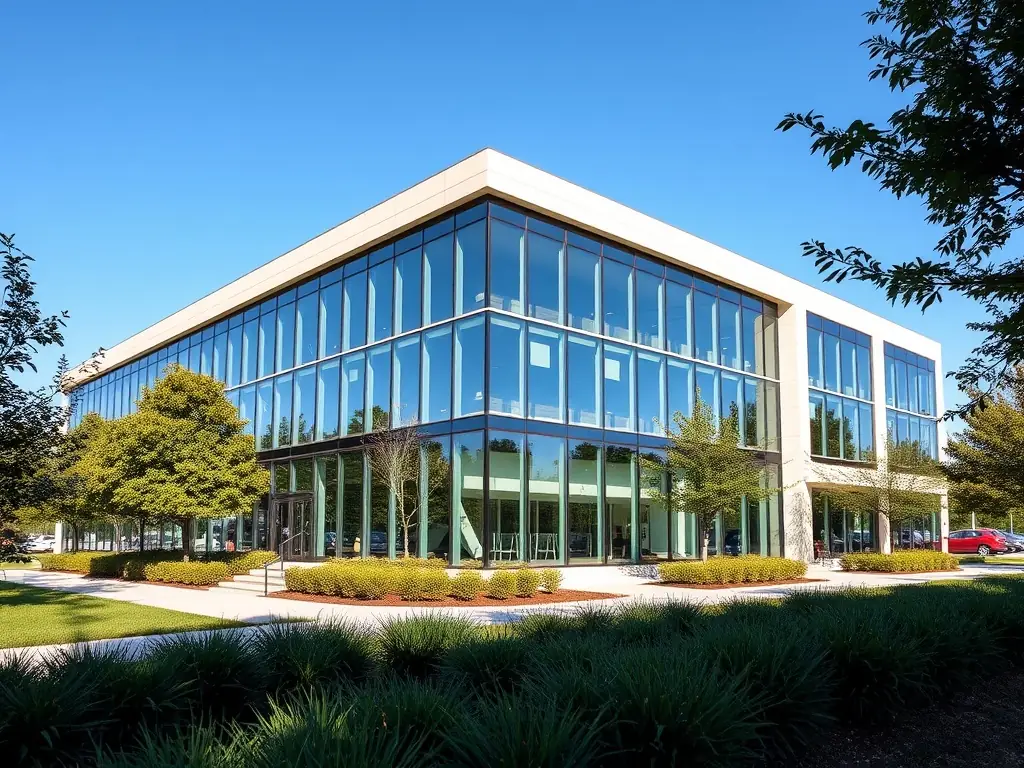 Exterior cleaning of a large office complex to improve appearance and safety standards.